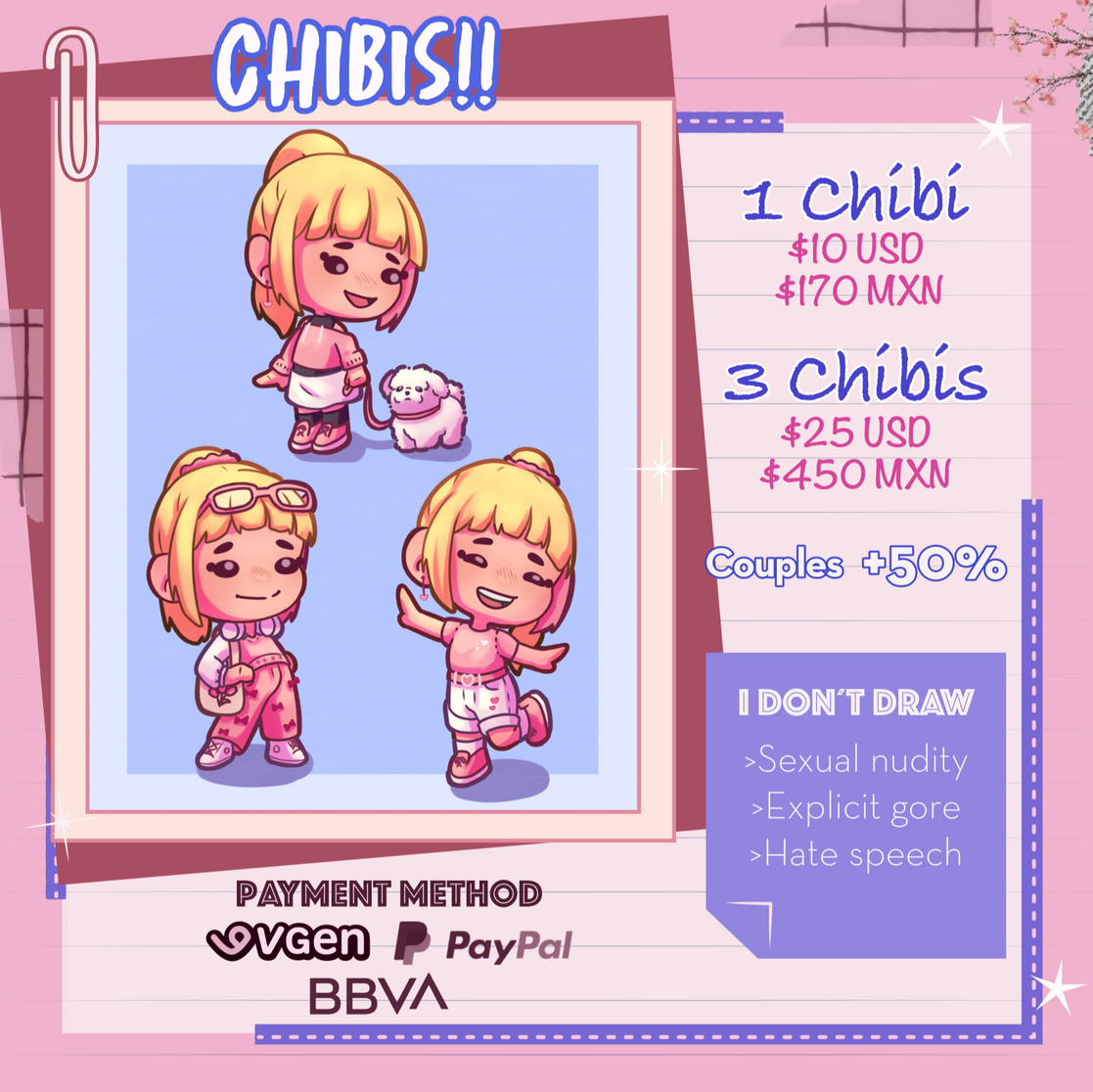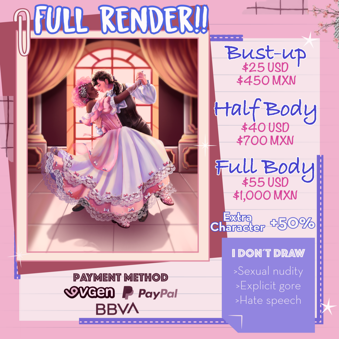 When requesting the commission, you must send me the information of this, including: type of commission, references of the character to draw (I do not do character design) and a general idea of the drawing. I will make a quote and if you accept it payment will be made.